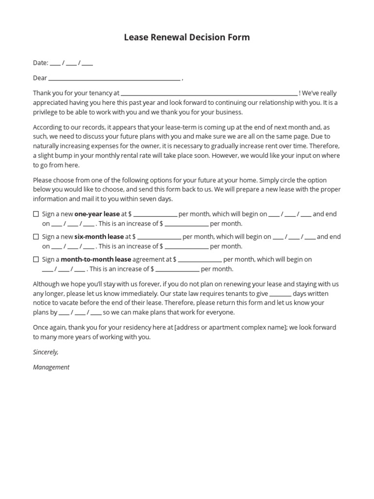 Lease Renewal Decision Form PDF PDF